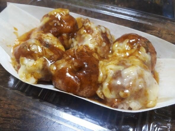 定番のソースたこ焼きのほかに、照り焼きソースのたこ焼き「てりたま」やカレーとチーズコラボ「カレー番長」などちょっと変わったたこ焼き、コロッケやフライドポテトもありました。